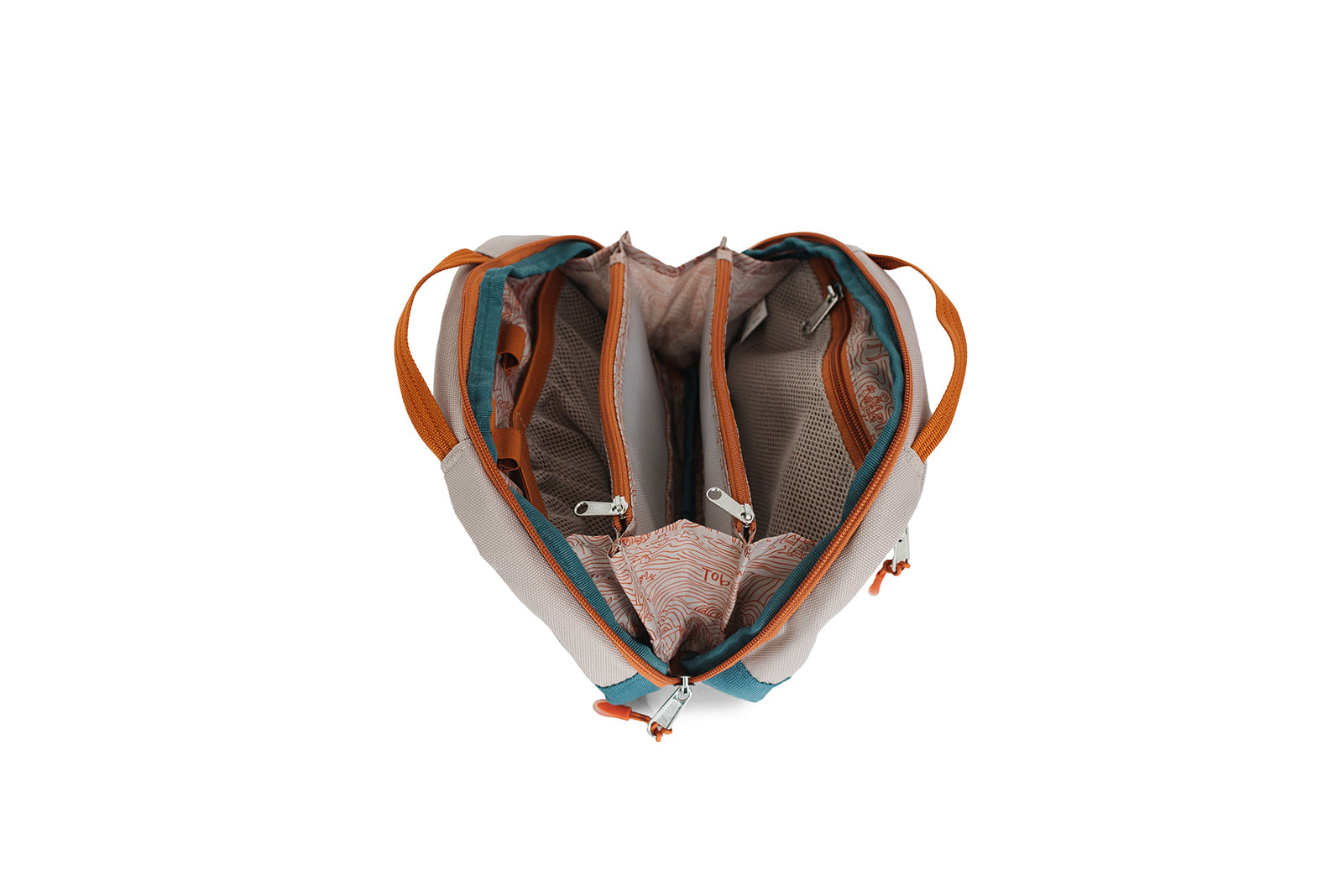 Your favorite TOBIQ Toiletry Bag - now in a TINY VERSION! Our Tiny Toiletry Bag is crafted from the same durable recycled polyester. The Tiny Toiletry Bag combines functionality with style. Imagine an accordion file folder merged with a fashion icon—the result is this innovative toiletry companion. Its wide rainbow-shaped design unfurls to reveal a plethora of zippered pouches and pockets, all thoughtfully arranged to keep your essentials organized and easily accessible. Whether you're on a weekend getaway or a long journey, this toiletry bag fits seamlessly into any of our TOBIQ duffel bag compartments.