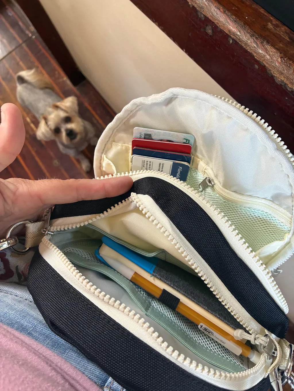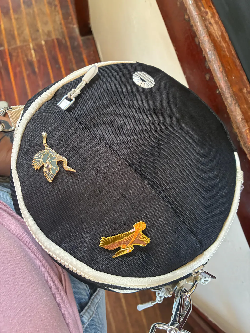 This bag is really great. I love the size of this bag—it can fit all the essentials I need to take with, plus have a little room for extra items (like when my husband asks me to hold his sunglasses). It fits well inside my work bag, so I’m not carrying two bags at once. I appreciate the fun shape of this bag—the circle shape makes it unique. However, the front lined zipper pocket is a bit of a tight squeeze for sunglasses or my phone, so I wish that was a little larger or had a little gusset to allow it to expand a bit. And I wish that it was available in the classic look of black with brass zippers, or black with black zippers (the black and white looks nice, but just not my first choice). As reference I have the older, slightly smaller Tobiq DUO hip pack that I’ve used for a few years. I love the color combo (black with brass zippers) but that one’s just a tiny bit too small. Overall, I’m very happy with the new circle bag!