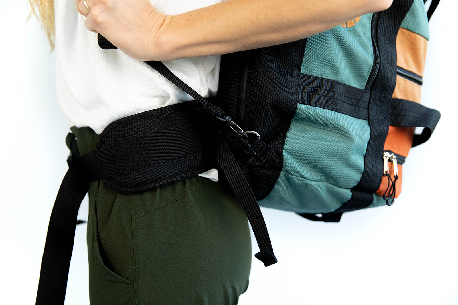 Our innovative detachable waist belt, meticulously engineered to redistribute weight from your shoulders to your hips, ensuring optimal comfort during your travels. Designed to seamlessly integrate with any of our existing Tobiq duffels, the belt effortlessly attaches to D-rings using a T-bar latch system, providing additional support with its padded design. When not in use, simply detach it for convenience. Crafted for extended journeys through bustling cities and airports, our waist belt prioritizes comfort without compromise. Constructed with military-grade 1000D tarpaulin and padded with aerated foam cushions and breathable mesh, it's engineered to withstand the rigors of travel.