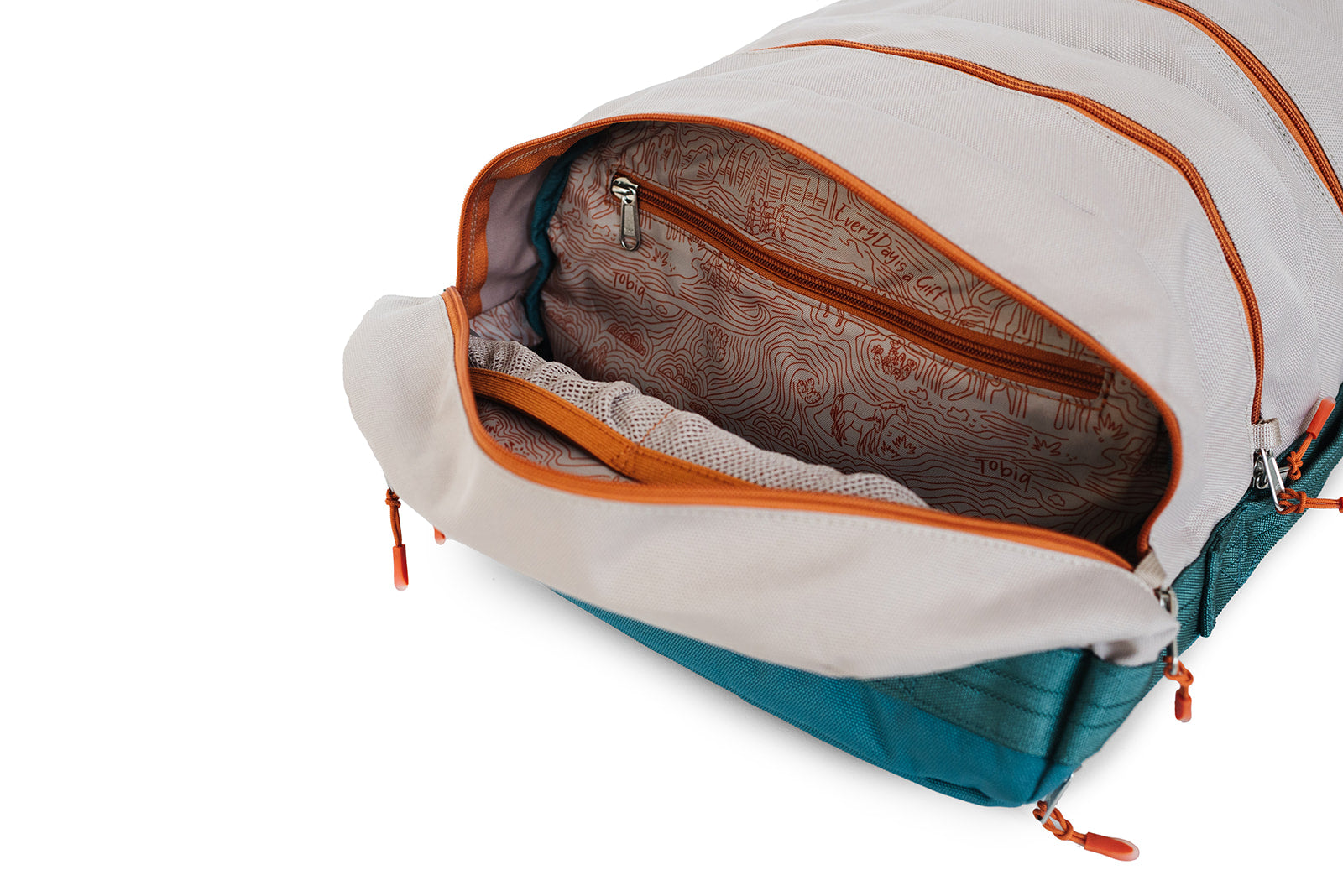 Our 30L TOBIQ Bag - affectionately called "The Tiny Tobiq"! It is crafted from durable recycled polyester. This bag is the epitome of organization and style. Designed with meticulous attention to detail, this duffel offers a sweetly organized solution for your travels. Each of its four equal compartments is equipped with two interior bungees and a long zippered pocket, ensuring that everything has its place.